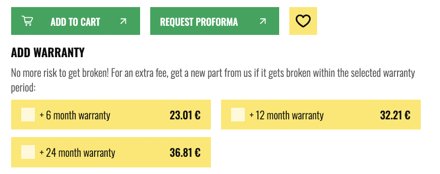 - 6 month warranty: +25% (on the net price of the spare part)