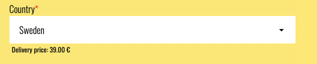 Our delivery service is automated within the SPARE-HUB online shop and offers you a price-calculator for orders up to 25kg for the selected European countries listed below. Once you are in the step of entering your delivery address and selecting your country, our system will present you the price for the selected country based on the total weight of your basket. The price result will be displayed right below the selected country field: